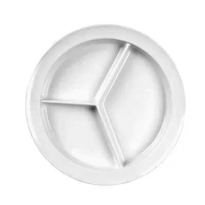 Introducing the Thunder Group NS701W Plate/Platter, a must-have for any commercial restaurant. This round compartment plate is designed to enhance efficiency and organization in your establishment. With three deep wells, it allows you to serve multiple food items in one convenient dish, reducing the need for separate plates and minimizing clutter on your tables. Made from break-resistant and dishwasher-safe melamine, this plate is built to withstand the demands of a busy restaurant environment. Its BPA-free construction ensures the safety of your customers and staff. The NuStone White color adds a touch of elegance to your table settings, while the NSF certification guarantees its quality and suitability for commercial use
