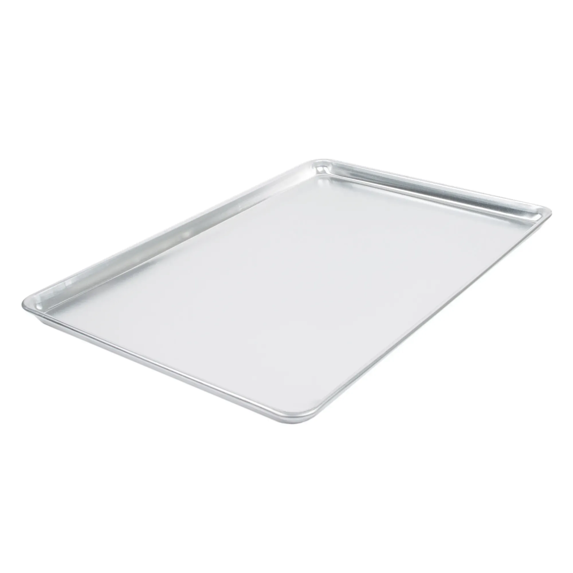 Made of heavy-duty 19-gauge aluminum, the Vollrath® Wear-Ever sheet pan is proven to be 20-percent stronger than the competition. It heats up and cools down quickly, and the pan’s concave bottom flattens for even heating. The natural finish ensures uniform results, and the tapered sides allow for convenient stacking.