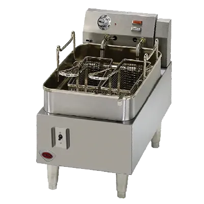 Unleash culinary creativity with the Wells F-15 Electric Countertop Fryer. Designed for commercial restaurant use, this fryer is a game-changer in the kitchen. With a 15 lb. capacity, it can handle high-volume frying, allowing you to serve up delicious crispy treats to your customers in no time. The thermostatic controls ensure precise temperature regulation, guaranteeing consistent results with every batch. Equipped with two half-size baskets, you can fry different items simultaneously, increasing efficiency and productivity. The stainless steel fry pot, front, top, and sides not only provide durability but also make cleaning a breeze. The adjustable legs allow for easy customization to fit your countertop height. This NSF, UL, and CSA certified fryer is a reliable and safe addition to any commercial kitchen. Elevate your frying game with the Wells F-15 Electric Countertop Fryer.