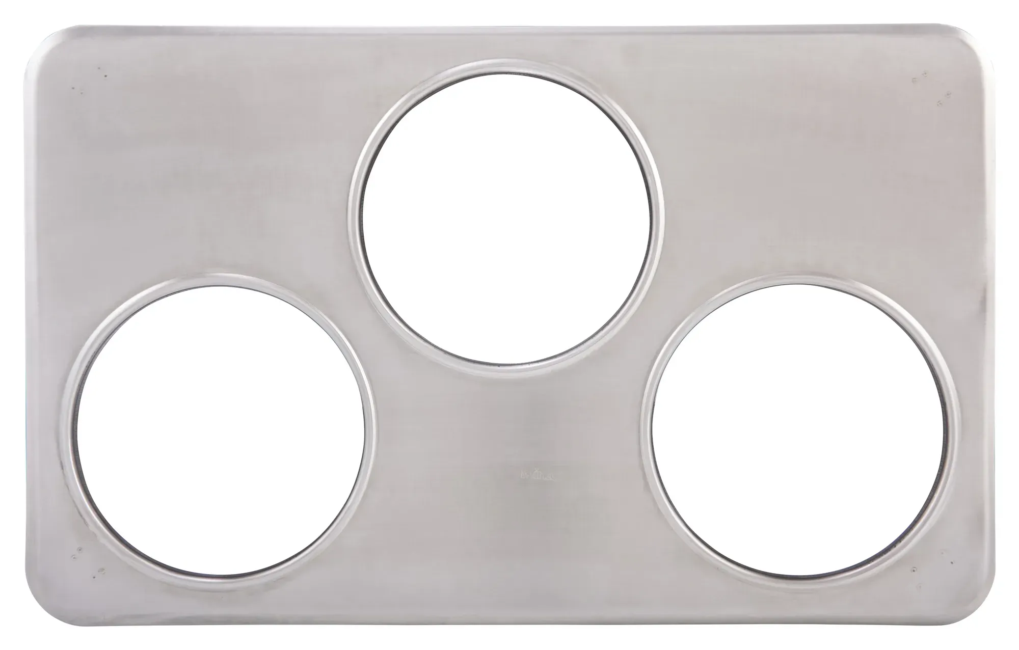 Crafted from high-quality stainless steel, the Winco Adapter Plate is built to withstand the rigors of a busy restaurant environment. Its robust construction ensures long-lasting performance, providing you with a reliable solution for your food service needs. The plate features three 6-3/8 inch holes, perfectly sized to fit 4-quart insets, allowing for efficient and organized food preparation and service.