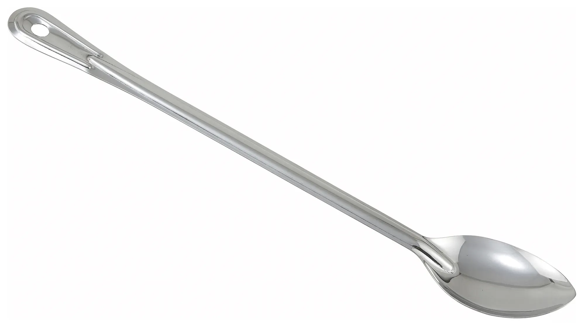 With its 18-inch length, the Winco Basting Spoon offers excellent reach, allowing chefs to baste, stir, and serve with ease, even in deep pots and pans. The solid design ensures that it can handle thick sauces and gravies without bending or breaking, providing consistent performance every time.