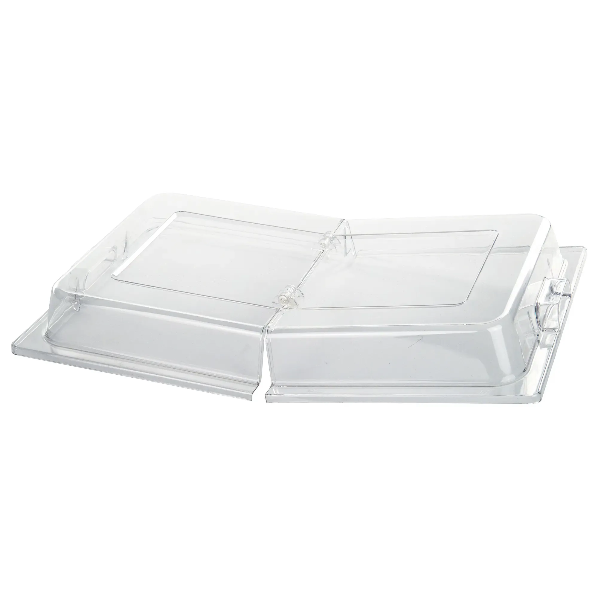 The hinged design of the Winco Dome Cover offers convenience and ease of use, allowing for quick access to your dishes without the need to fully remove the cover. This feature is particularly beneficial during peak service times, enabling your staff to work more efficiently and maintain the quality of your food.
