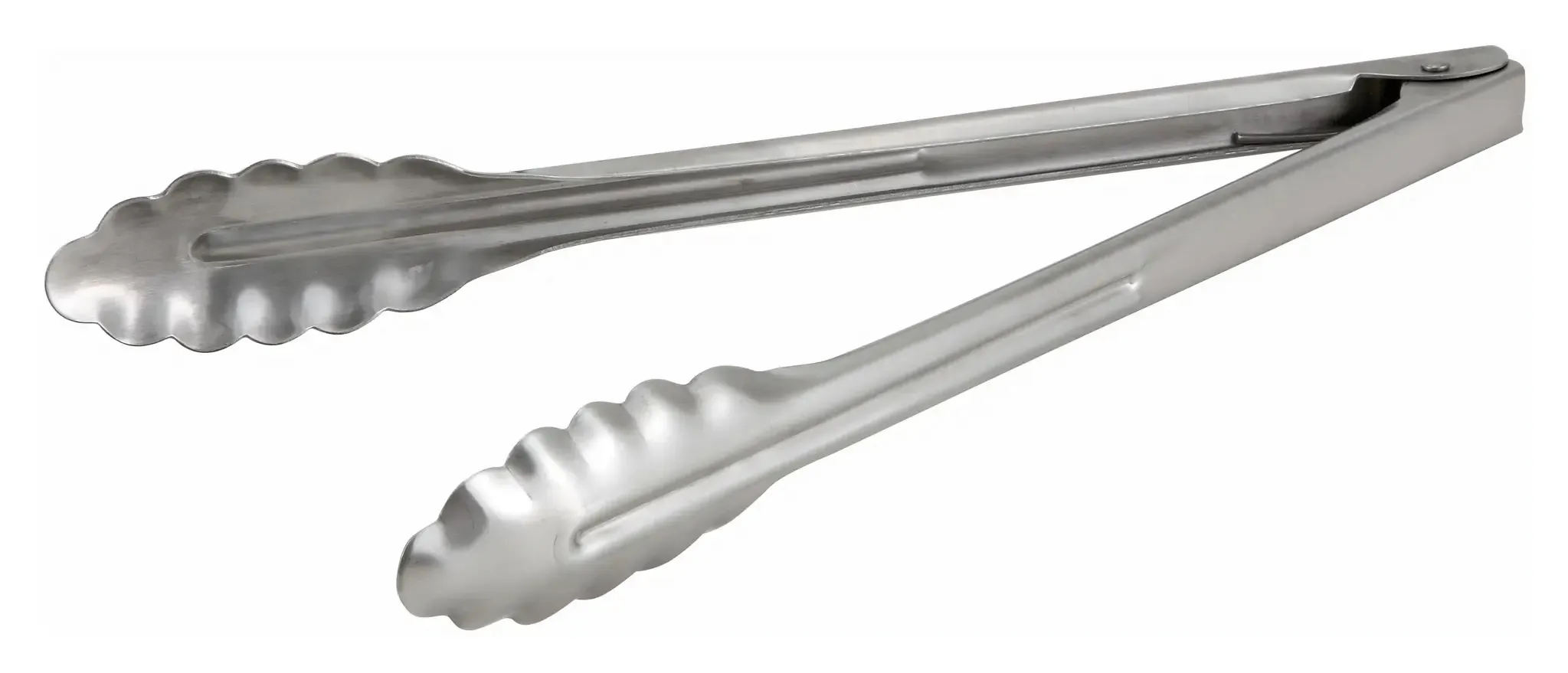 Achieve perfect results every time with the Winco Utility Tongs. Designed specifically for the demanding environment of a restaurant kitchen, these tongs are crafted from extra heavy weight 1.2 millimeter stainless steel, ensuring durability and longevity. The coiled spring mechanism provides a smooth and reliable operation, making it easy to handle even the most delicate ingredients with precision. The scalloped edge of the Winco Utility Tongs offers a secure grip, allowing chefs to effortlessly turn, lift, and serve food without slipping. This feature is particularly beneficial when dealing with slippery or delicate items, such as pasta or seafood. The robust construction of these tongs ensures they can withstand the rigors of daily use in a busy kitchen, maintaining their performance and appearance over time. Incorporating the Winco Utility Tongs into your kitchen arsenal means you can handle a variety of tasks with ease, from flipping steaks on the grill to serving salads at the table. The extra heavy weight design provides a substantial feel, giving chefs confidence in their tools and enhancing their overall efficiency. While the model number UT-12HT may not be the first thing you consider, it signifies the high-quality engineering and attention to detail that Winco is known for. These tongs are an essential tool for any professional kitchen, combining functionality, durability, and ease of use in one reliable package. Upgrade your kitchen with the Winco Utility Tongs and experience the difference that quality tools can make in your culinary creations.